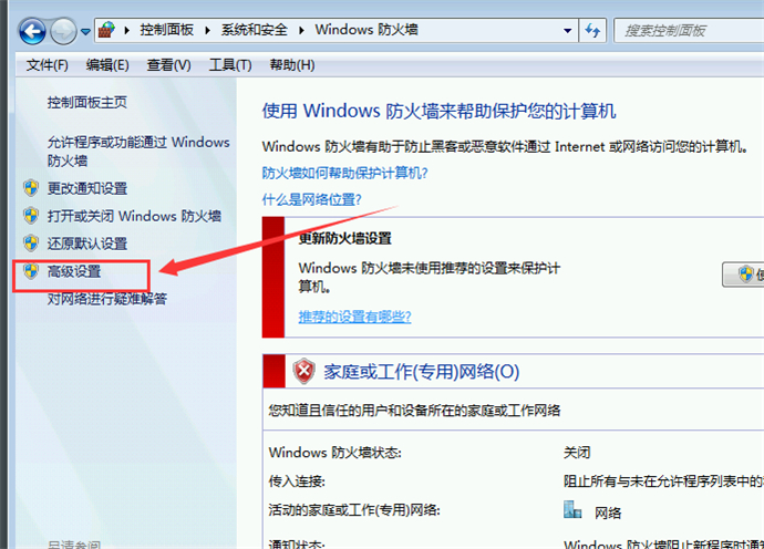 3、打開windows防火墻